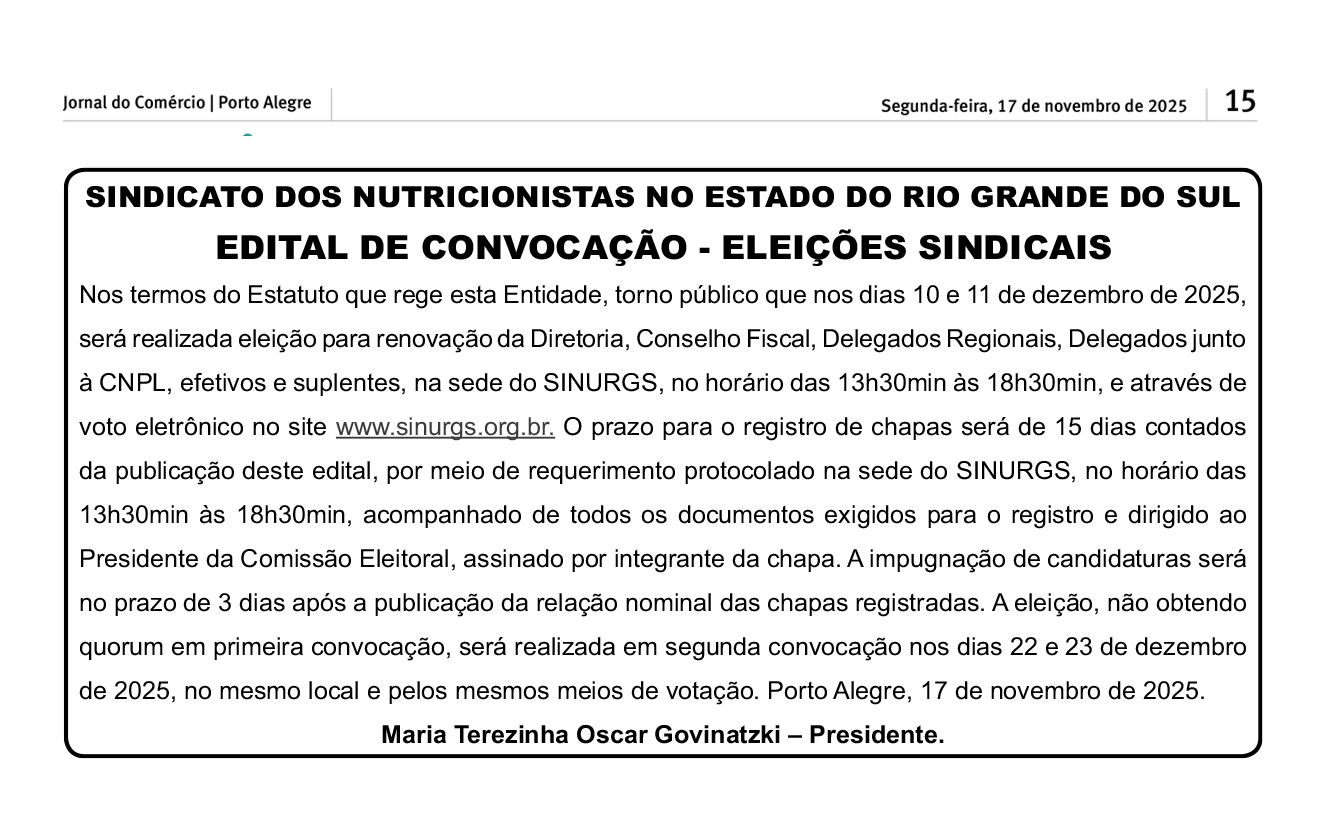 Sindicato dos Nutricionistasdo Rio Grande do Sul Sinurgs é a categoria para a categoria