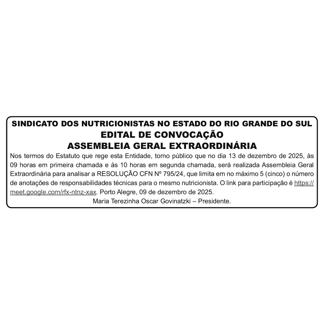 SINDICATO DOS NUTRICIONISTAS NO ESTADO DO RIO GRANDE DO SUL